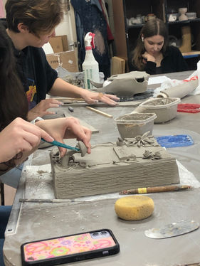 The Ceramics & Sculpture IV course welcomes students to independently explore the world of 3D art. This course is a year-long (two semester) advanced course where students will be working with and creating in 3D mediums. As part of this class students will create a portfolio of work throughout the year to display their artwork and processes. Students will be assigned overall big picture themes/parameters for their projects, however they will be allowed to choose what to create inside the given themes. Students will thoroughly document and record their planning, process and reflections for each work of art they add to their portfolio. By the end of the year students should have created a high quality and diverse portfolio of 3D artwork. In order to register/enroll in this course students must have completed and passed Ceramics/Sculpture III.